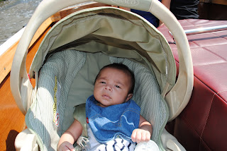 | Andreas on his first boat ride. (Brugges, Belgium) |